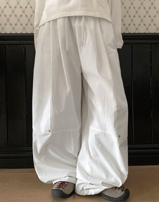 모니키 밴딩 스트링 리벳 절개 핀턱 와이드 팬츠 (4color)