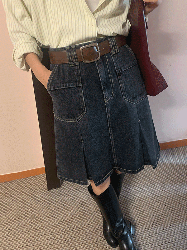 [문의폭주/인기🔥/사계절] 프렌치스 포켓 플리츠 데님 스커트