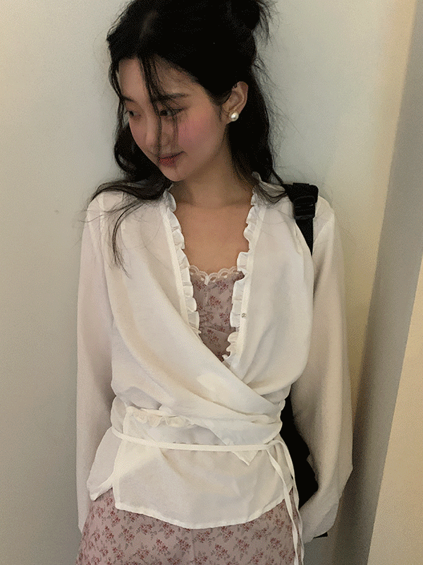 [코디인기폭주🌸/레이어드] 프레소 프릴 레이어드 랩 블라우스