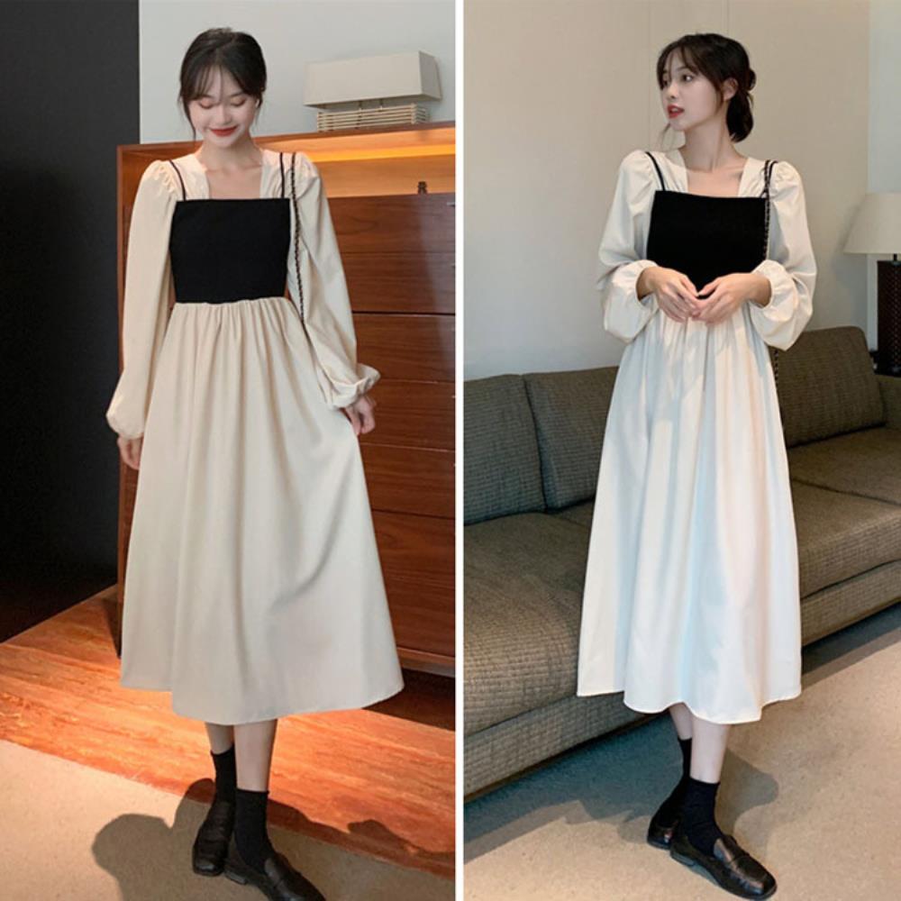 여성 롱슬리브 미니멀리즘 스타일 코디 데일리 롱원피스