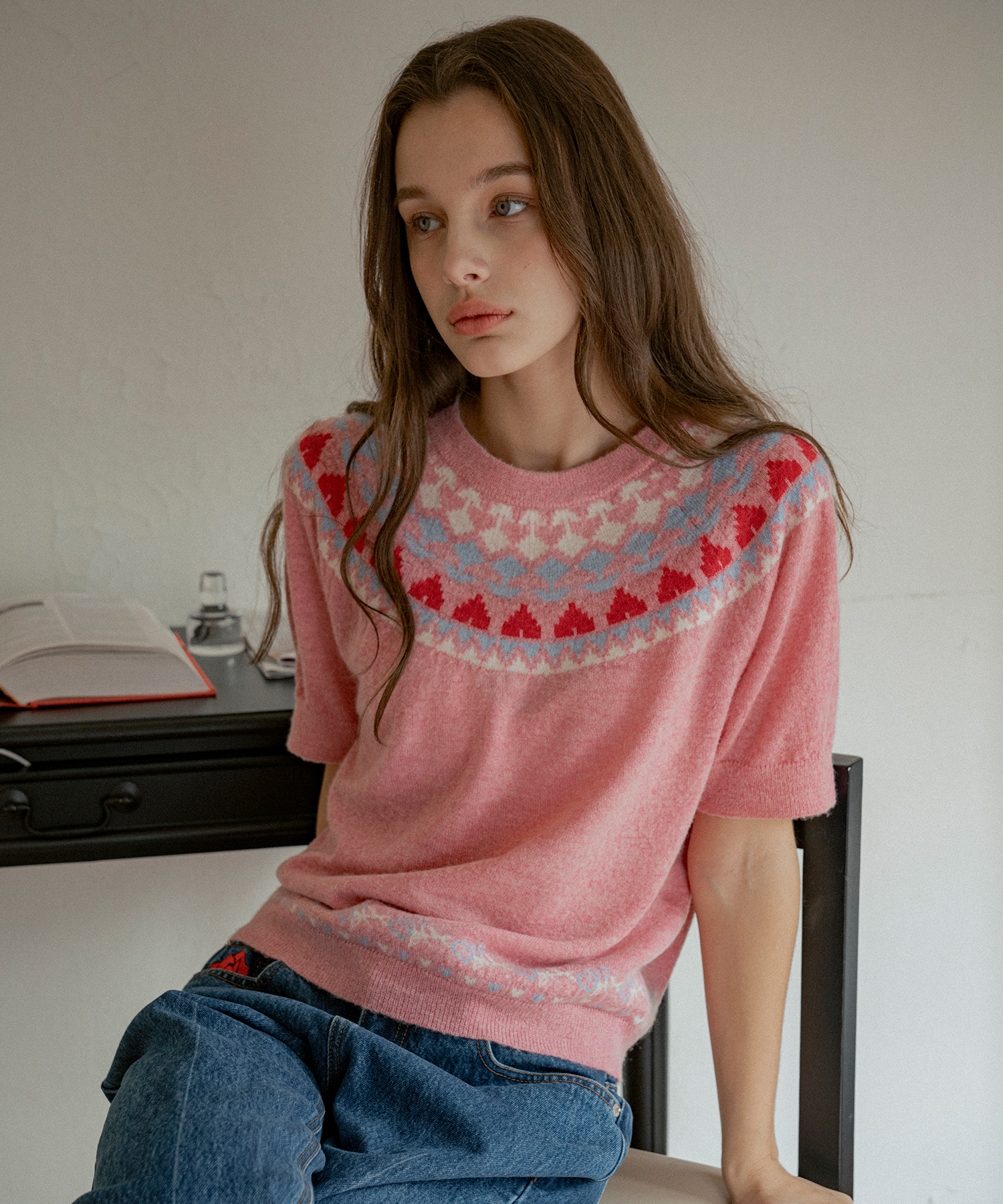 KN4261 플로럴 라운드 니트_Pink