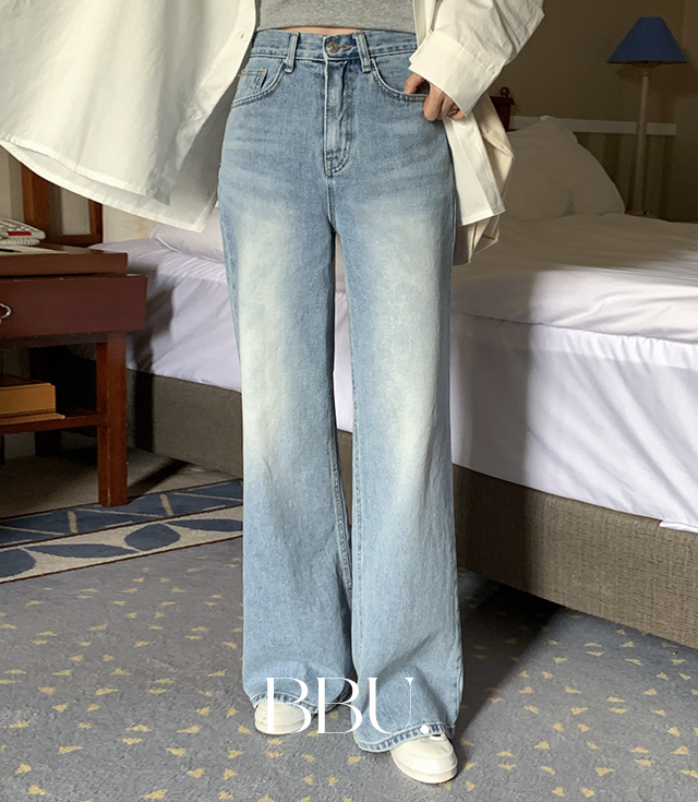 [B-MADE]캣브러시 연청 와이드청바지(XS~L) [하이웨스트 데님팬츠 긴바지 일자 슬림 레트로 화이트워싱 사계절 난스판 롱기장]