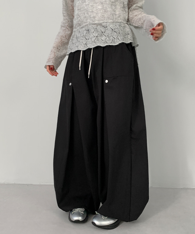 노미에 와이드 벌룬 리벳 코튼 밴딩팬츠 (공용)