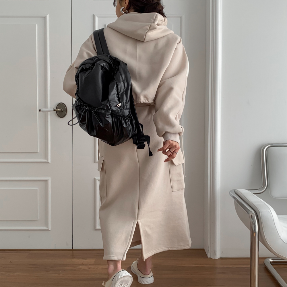 배색후드집업 스트링 치마세트 세미크롭후드 카고스커트 투피스셋업