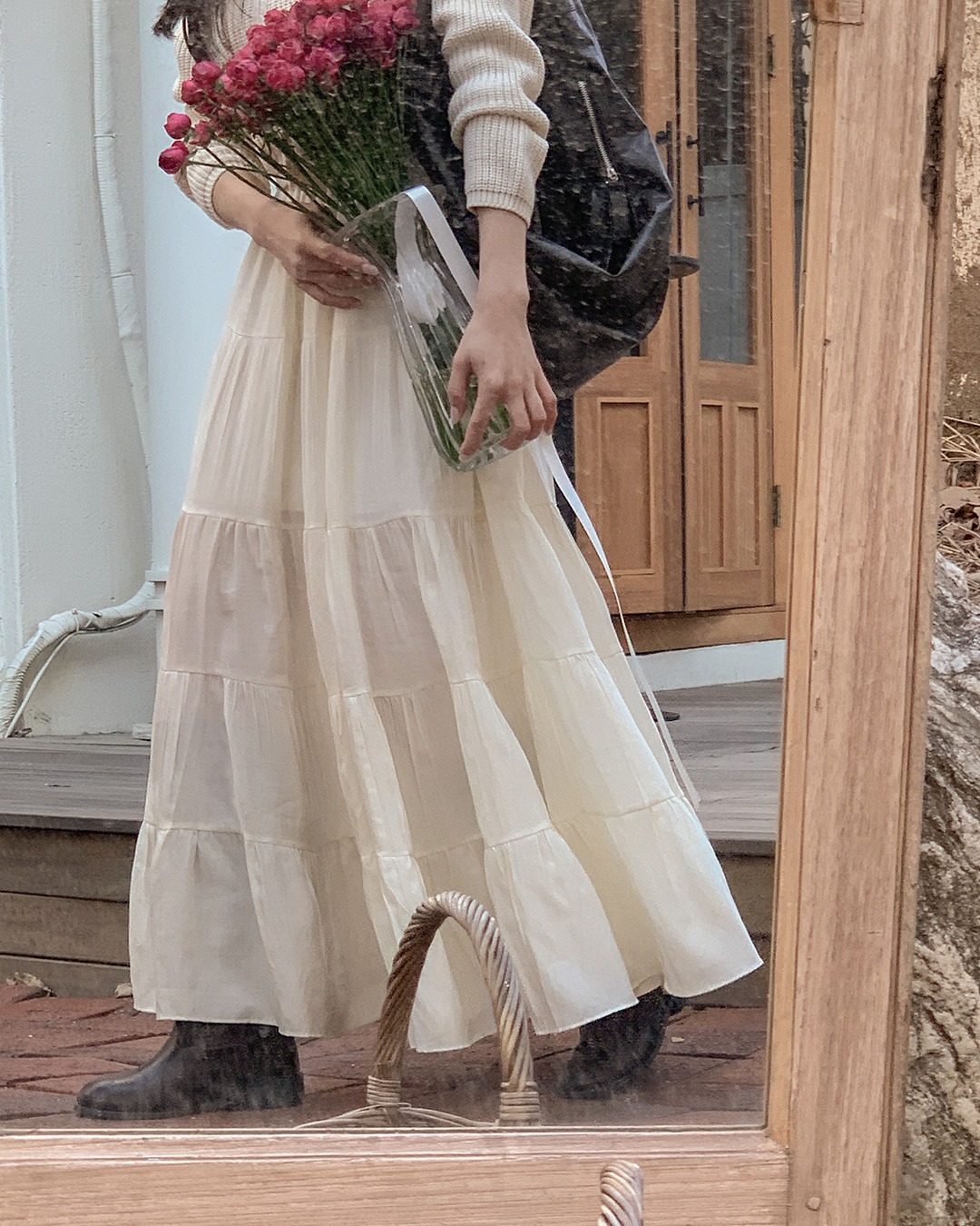 린도 프릴 롱 스커트(봄 봄신상 간절기 치마 밴딩치마 롱치마 레이스치마 프릴치마 캉캉치마 캉캉스커트 청순 여리여리 꾸안꾸 데이트룩 출근룩 모임룩 격식룩)