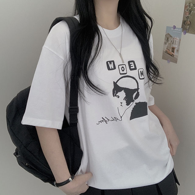 [신상할인!/특가] 빈티지 미야오 고양이 박시핏 반팔티셔츠