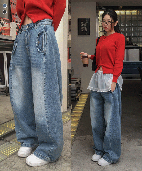 [핏보장/코디문의폭주] 멜트 포켓 벌룬 와이드 데님 팬츠