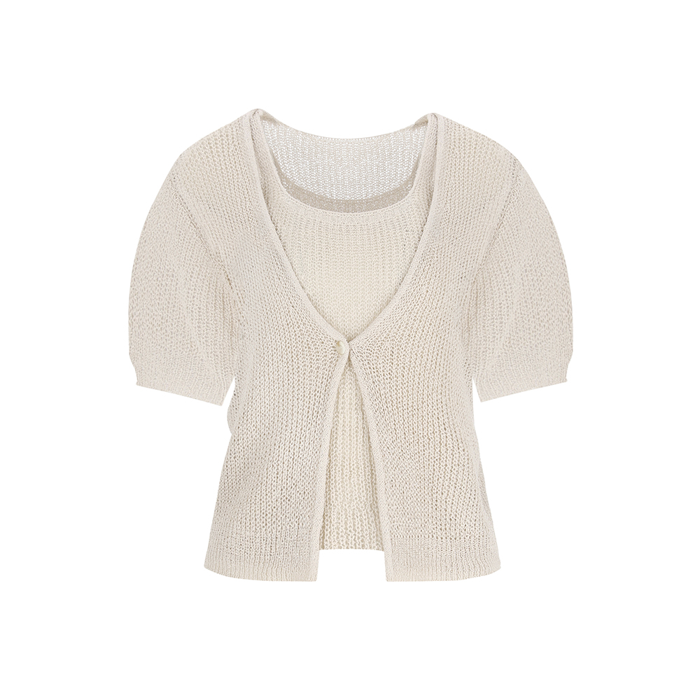 니트사 원버튼 딥 넥 반팔 가디건 & 나시 세트(TGCCG4997)