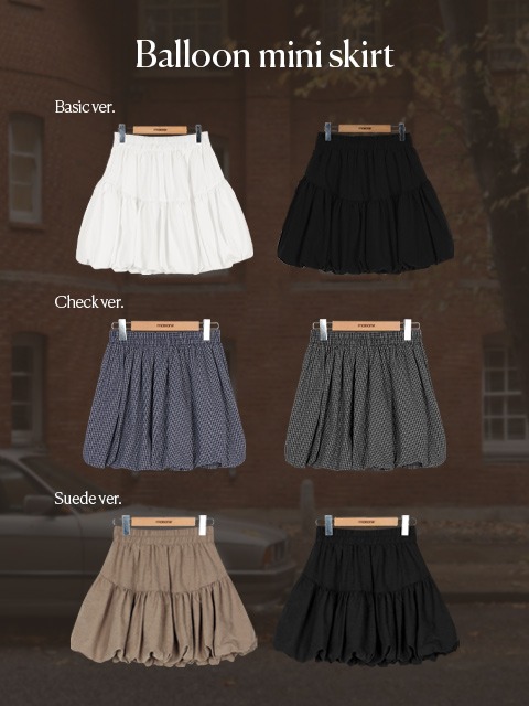 [단독][3type/속바지내장] 포인 밴딩 벌룬 미니 스커트 (44~77) (벌룬핏스커트-밴딩미니스커트-숏치마-A라인스커트-A라인미니치마-펌킨스커트-밴딩치마-밴딩스커트-체크스커트-체크치마)
