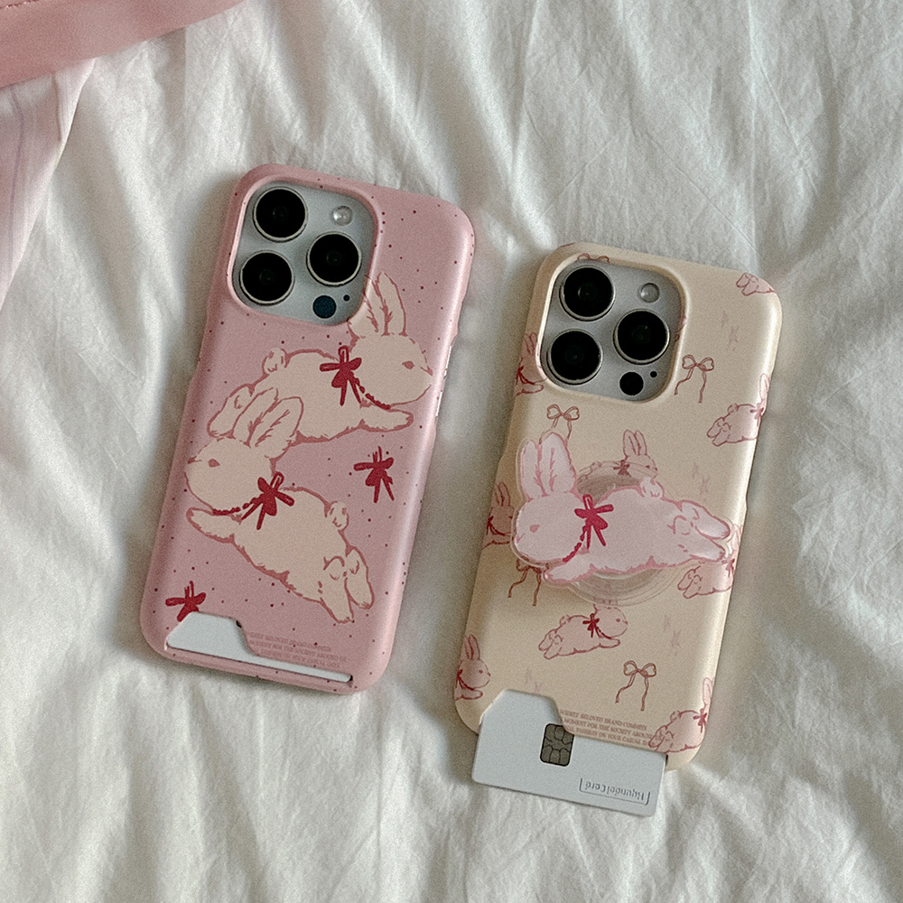 fuzzy ribbon bunny 아이폰 16pro 카드수납 하드 케이스