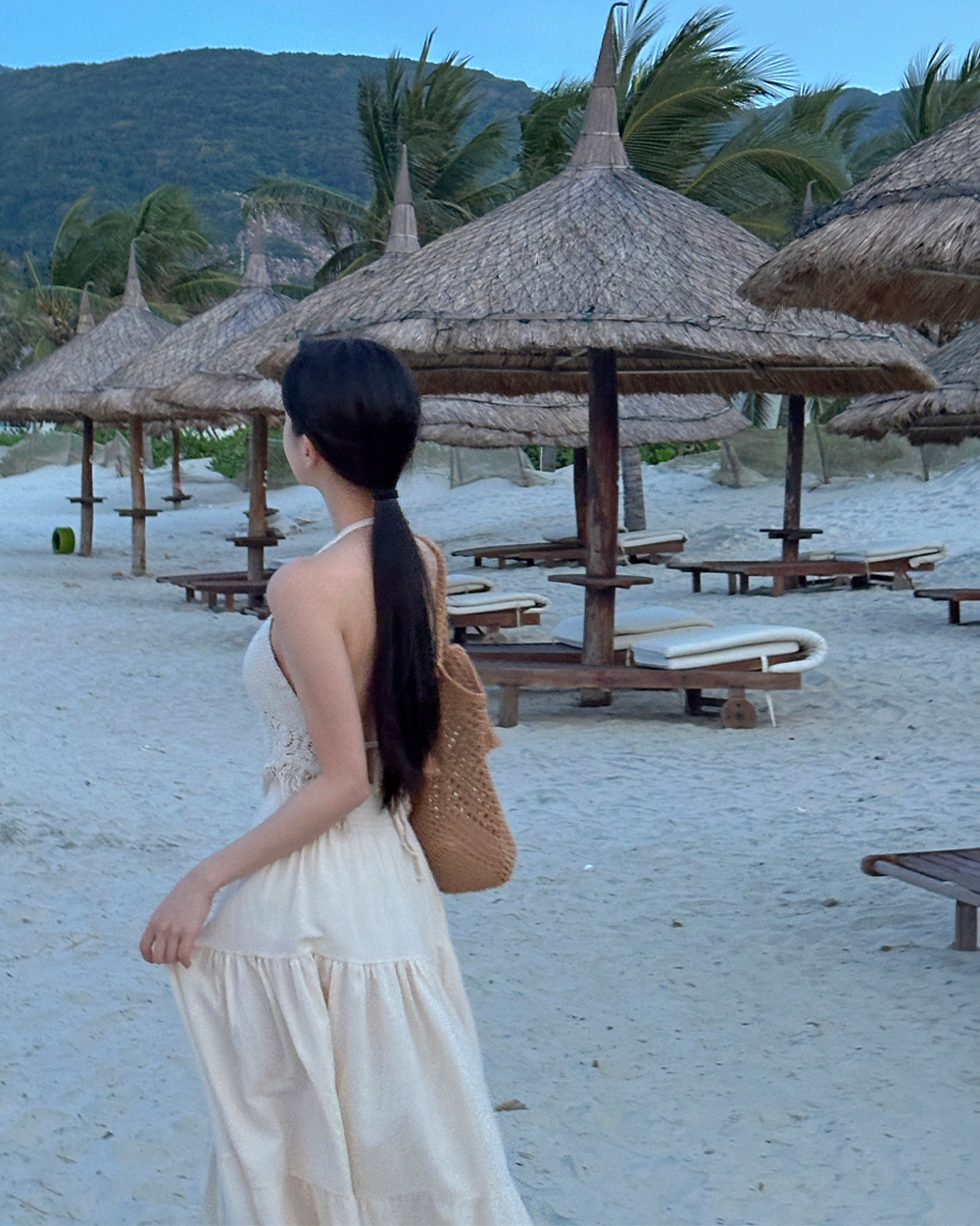 [오늘출발] 루에니 홀터넥 펀칭 나시 + 밴딩 롱스커트 투피스