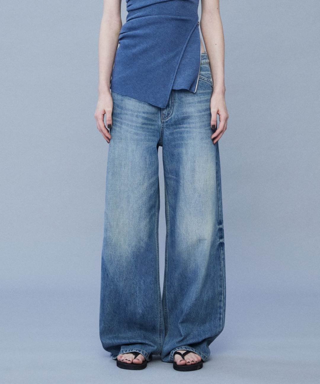 (W) 레인 미드라이즈 스트레이트 데님 팬츠 - 라이트 워시드 블루