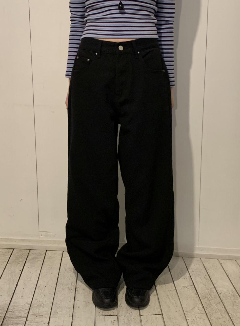 버논 블랙 스트레이트 와이드 코튼 팬츠 (1color)