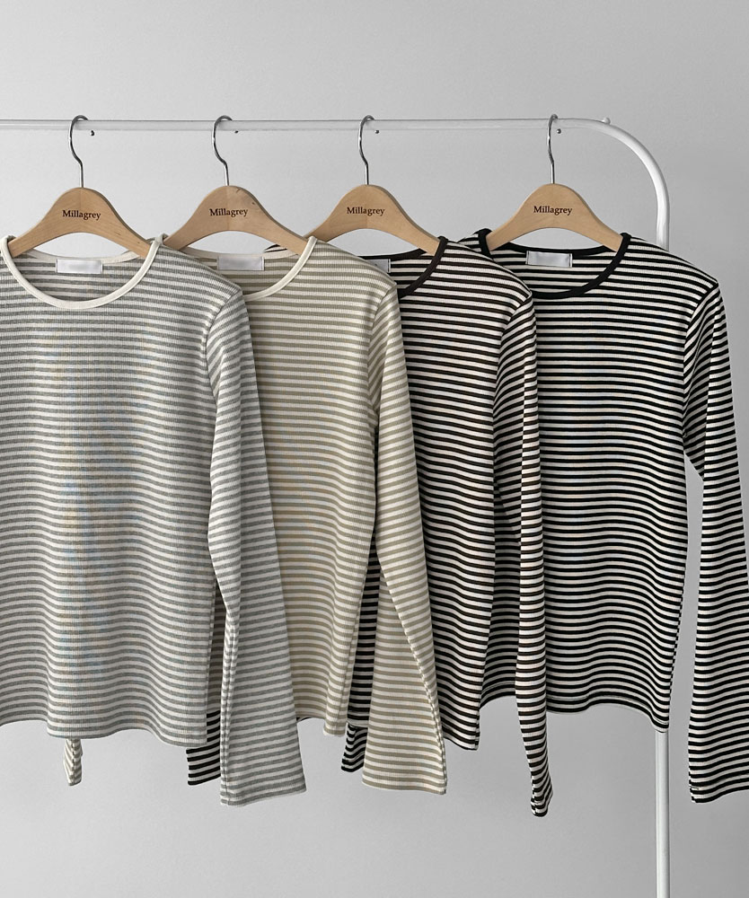 롱슬리브 스트라이프 단가라 골지 긴팔 기본 티