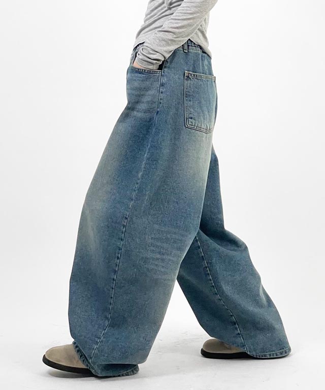 밴딩팬츠 여자통청바지 여자빅사이즈 중청 벌룬핏 여성와이드청바지