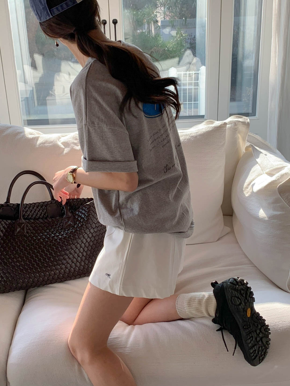 로멋 자수 밴딩 숏 팬츠