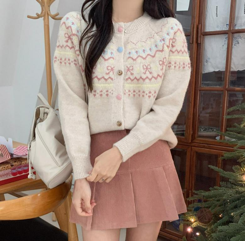 [차쥐뿔 박보영] 키토브 자개 빈티지 리본 솜사탕 울 가디건