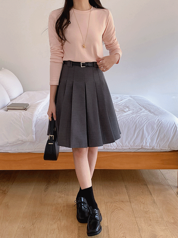 [✨플래시세일][🤎하객룩] 덤브 플리츠 미디 스커트(벨트set)