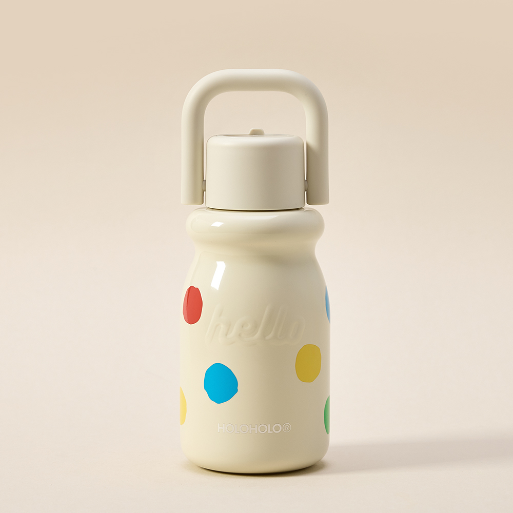 홀로홀로 밀크 텀블러 보온병 원터치 스텐 손잡이 머그 컵 도트