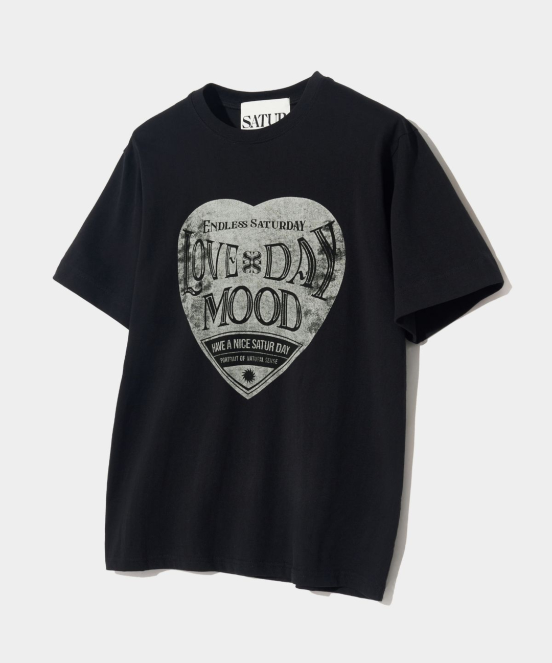 세터데이 레트로 무드 그래픽 반팔 티셔츠 - 빈티지 블랙