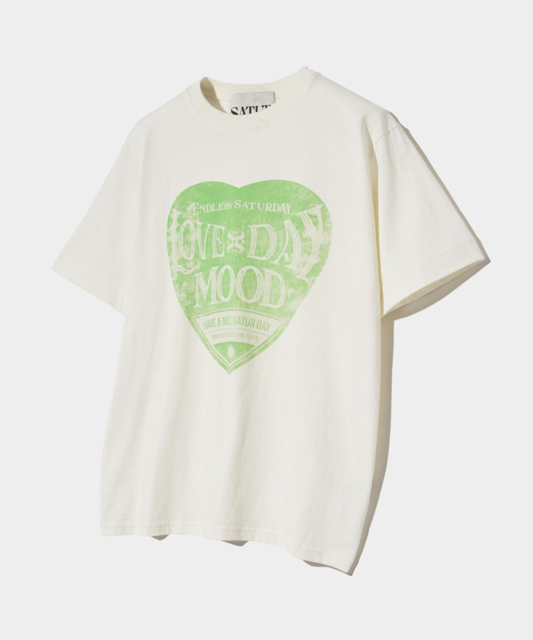 세터데이 레트로 무드 그래픽 반팔 티셔츠 - 크림 그린