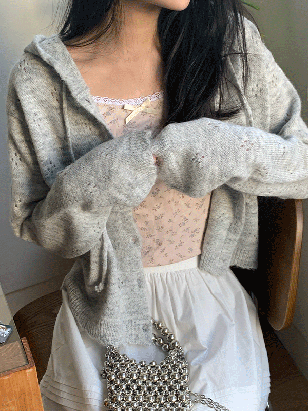 [그레이당일/인기재진행] 아로나 여리핏 펀칭 후드 니트 가디건