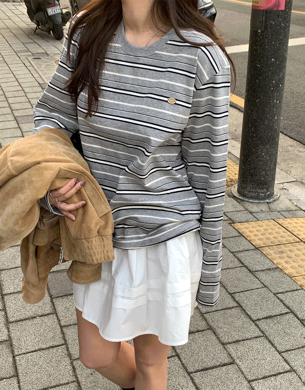 키링 로고 팬던트 단가라 스트라이프 긴팔티셔츠 - 2color