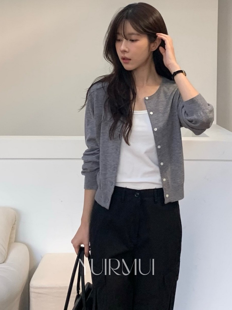 vergamot 베르가못 미니 메리노 울100 라운드 니트 가디건 4color