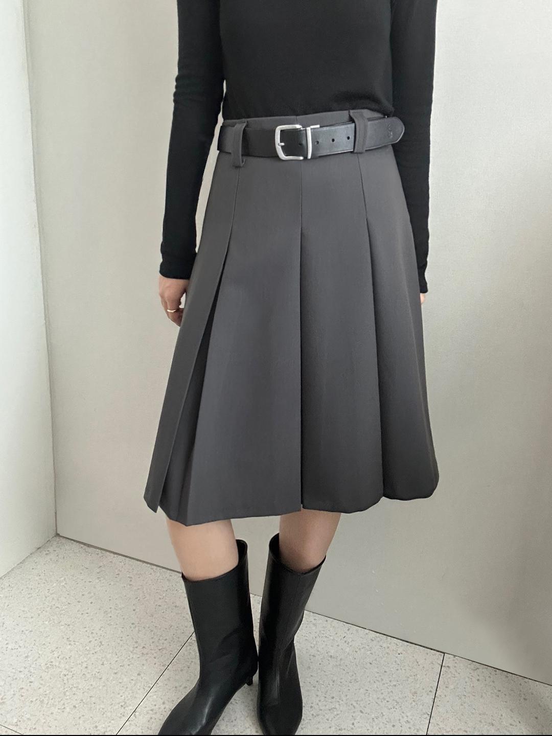 디무어 로우라이즈 투웨이 앞뒤 플리츠 주름 핀턱 a라인 미디 스커트 (베이지,차콜)