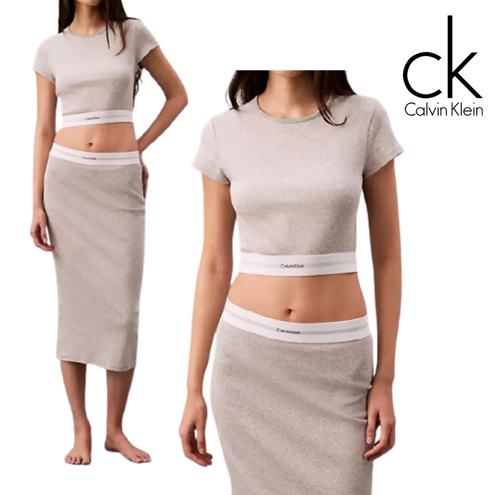 캘빈클라인 여성 리브 크롭 반팔 티셔츠 연그레이