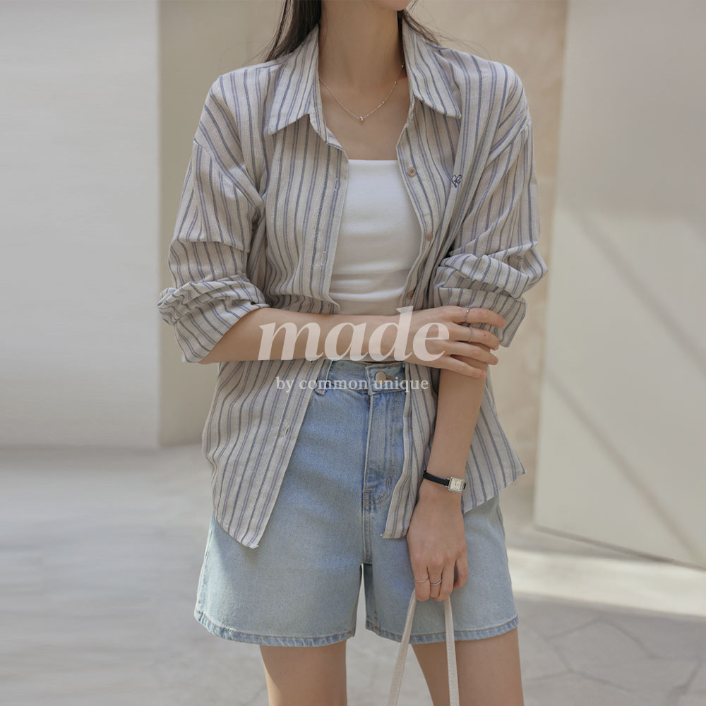 [MADE] 보에나 박시 언발 스트라이프 셔츠 (가을/간절기/긴팔/롱슬리브/오버핏/하트/자수/캐주얼/면/줄무늬/레이어드/출근룩)