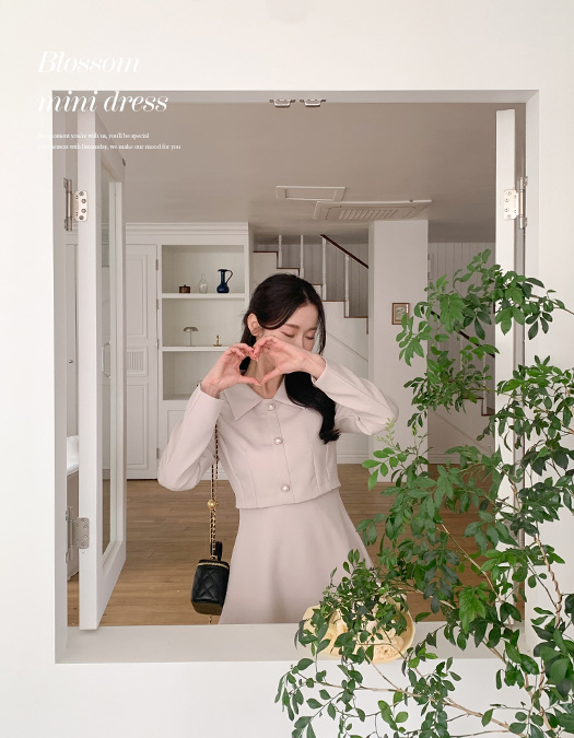 [쉿! 원피스야💐] 블라썸 미니 원피스 2color [투피스/카라/자켓/플레어/A라인/봄/봄원피스/하객/데일리/ 데이트/꽃놀이/벚꽃/오피스/룩/소개팅/격식/출근/페미닌/러블리]
