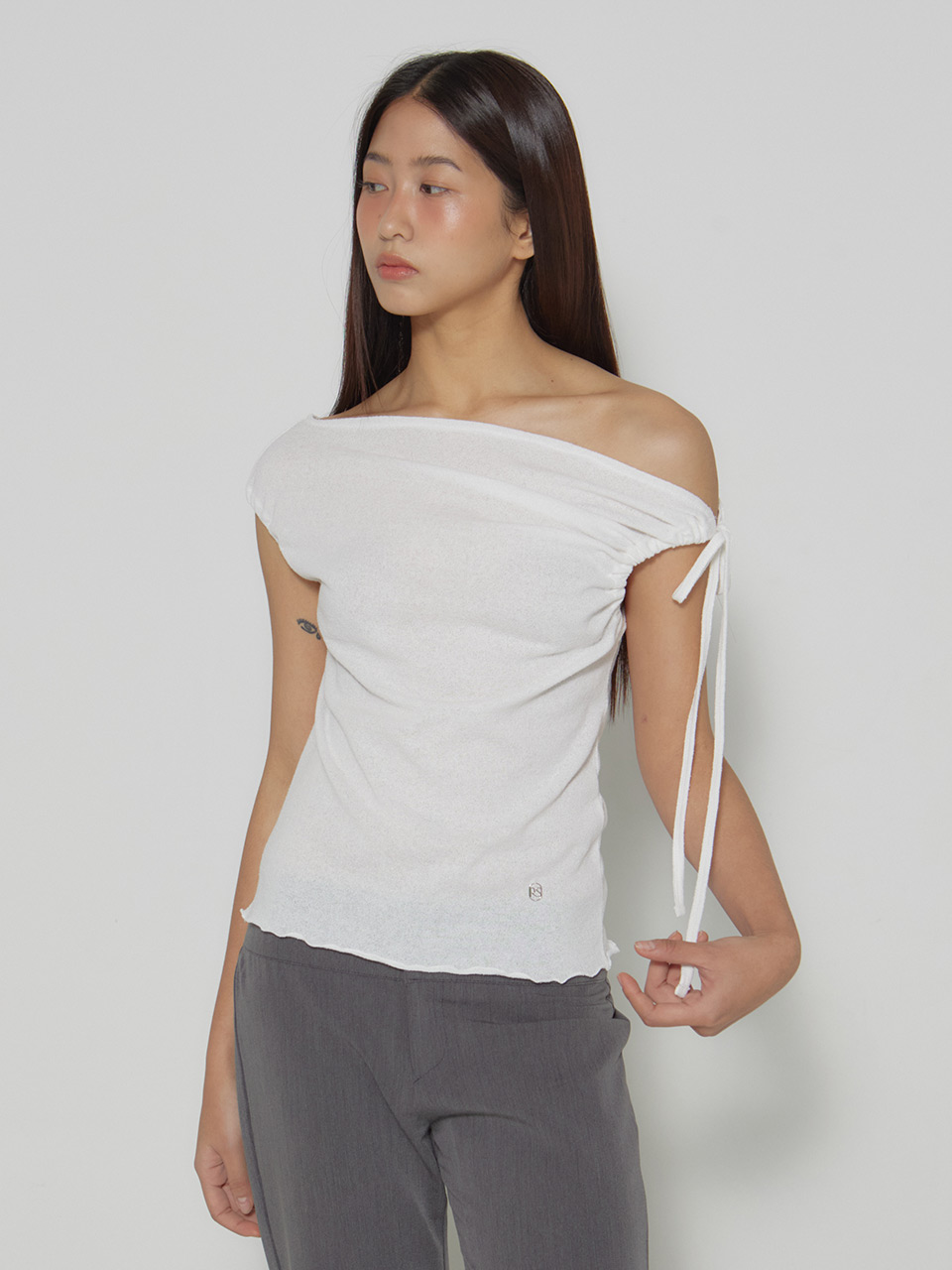 HELEN UNBALANCE SHIRRING SLEEVELESS - WHITE