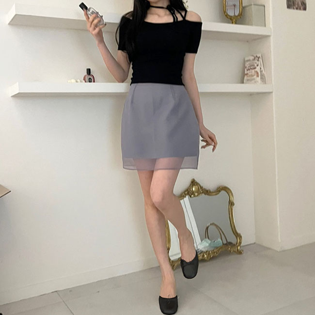 [국내생산/모임룩,하객룩/오간자레이어드/] 라논 오간자 레이어드 미니 스커트