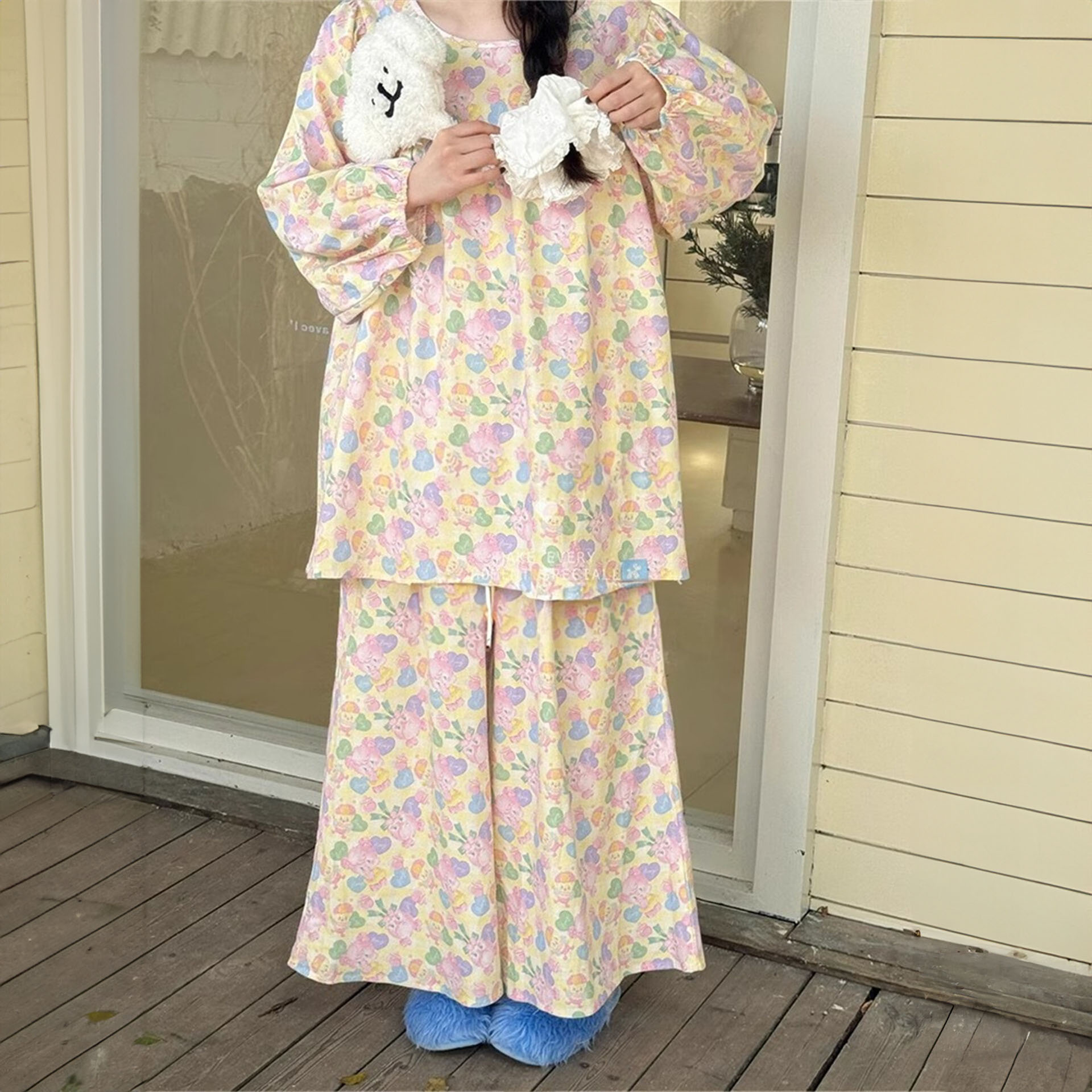 44-99 빈티지 감성 잠옷 엉덩이 덮어주는 빅사이즈 박시 봄 파자마