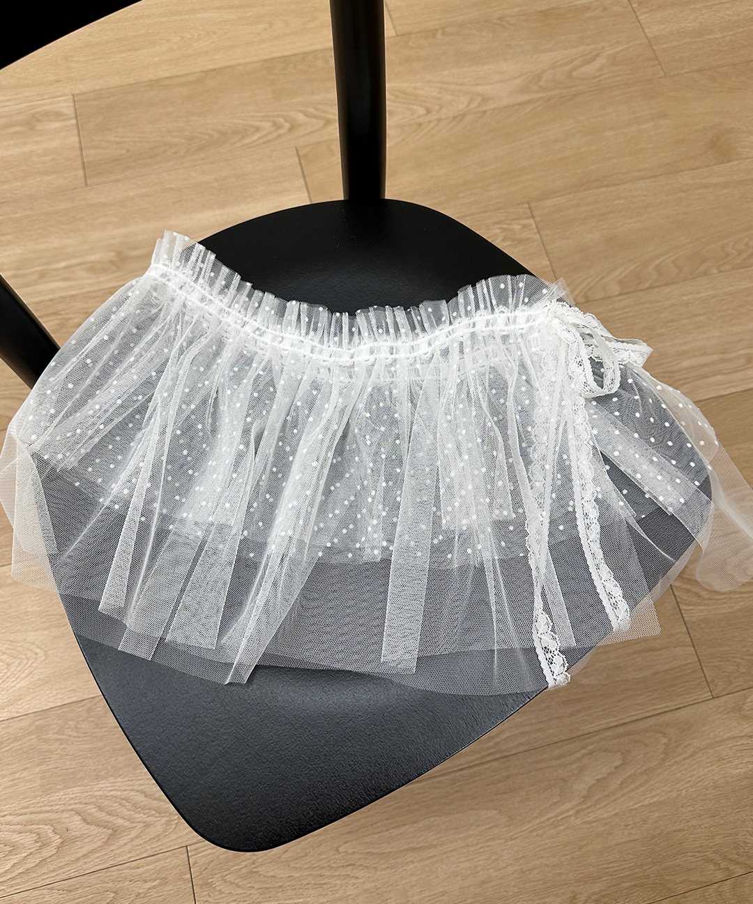 [단독] 라누에 도트 시스루 미니 레이어드스커트