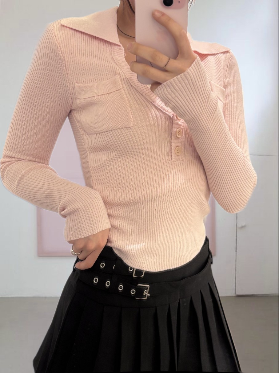 카라 배색 레이어드 골지 니트 티셔츠ㅣ봄니트 봄티셔츠 골지니트 골지티셔츠 카라니트