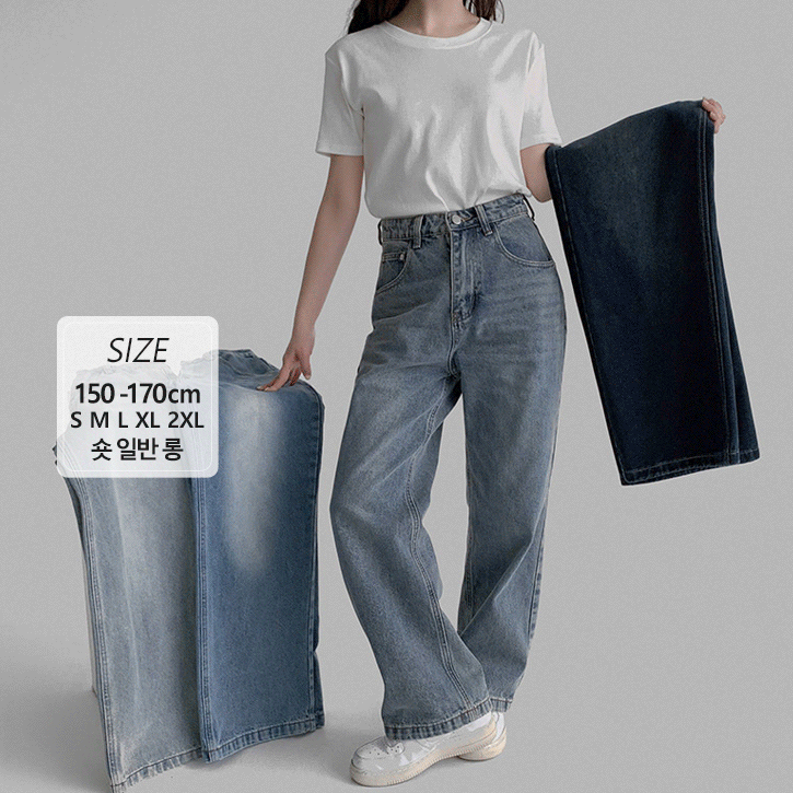 [숏,일반,롱]수선놉267 워싱세미와이드데님팬츠