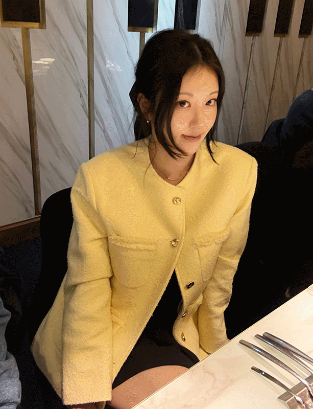 [울 30%] 클레어 트위드 금장 노카라 자켓