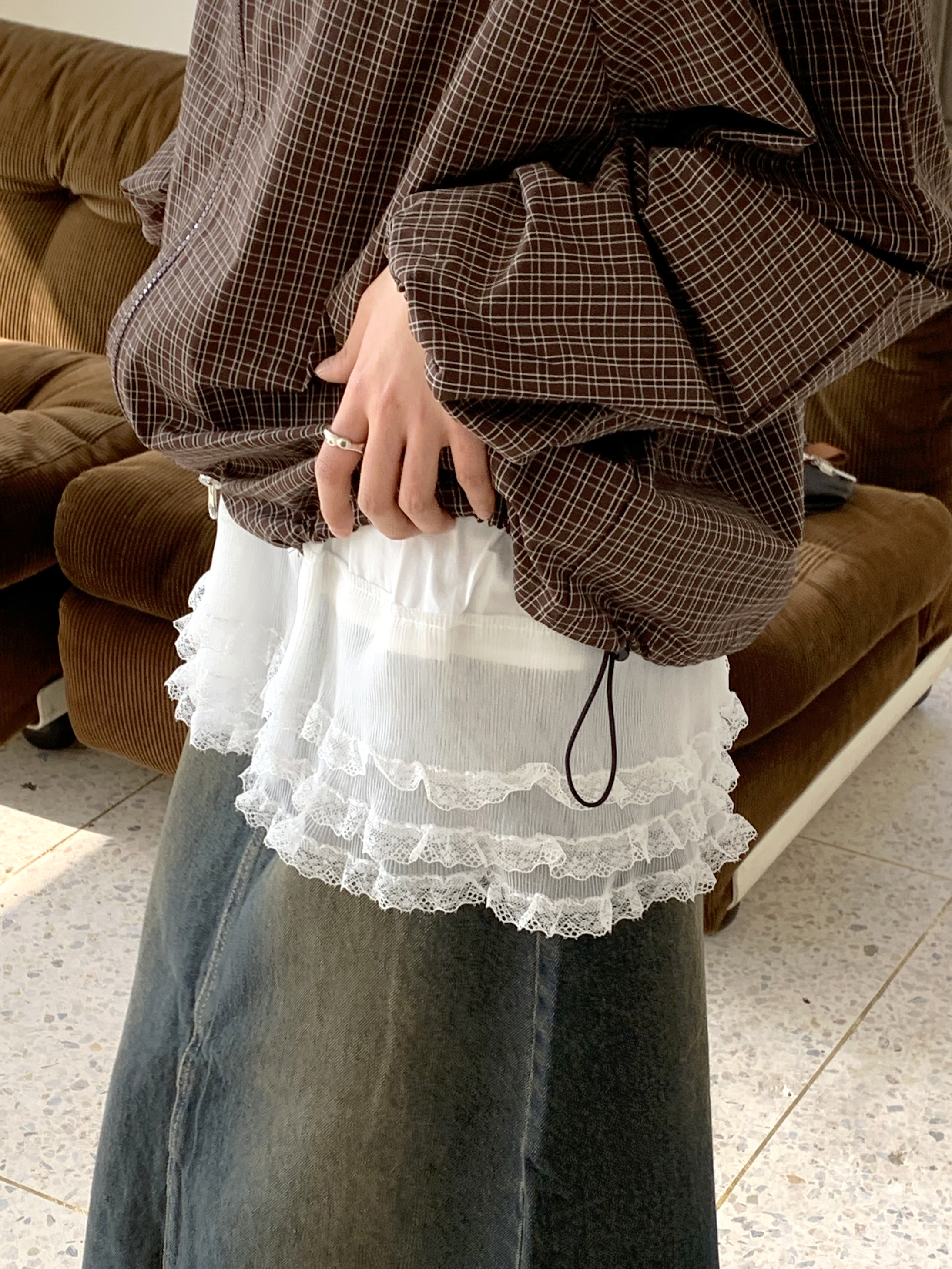 [코디 쉬운] 닝닝 레이스 캉캉 밴딩 레이어드 스커트