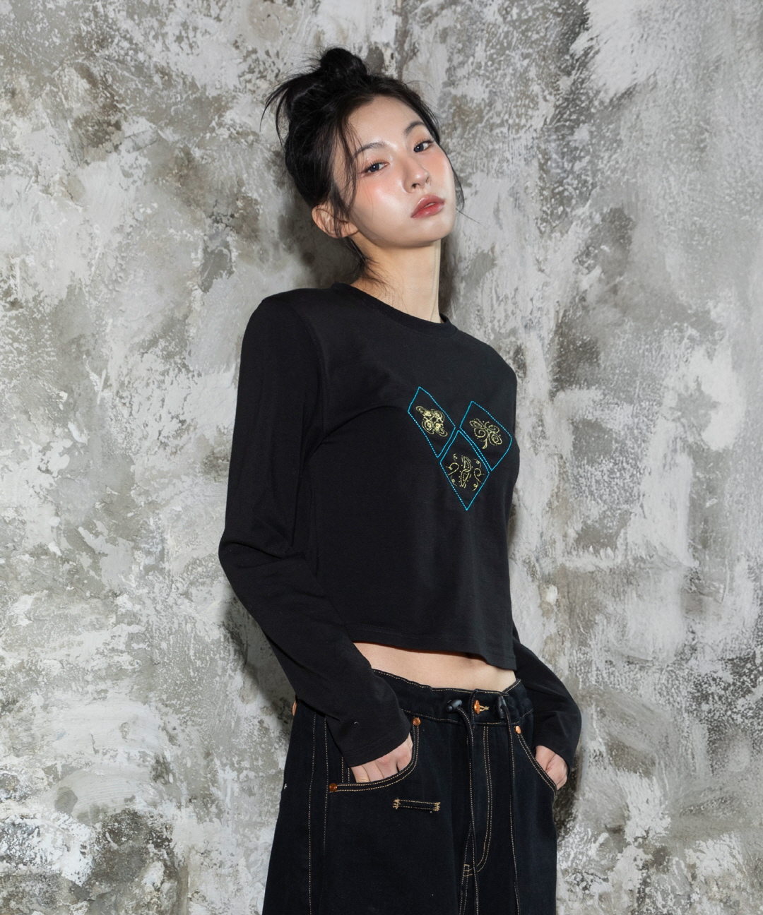 WXT035 에스닉 프린트 롱슬리브 (BLACK)