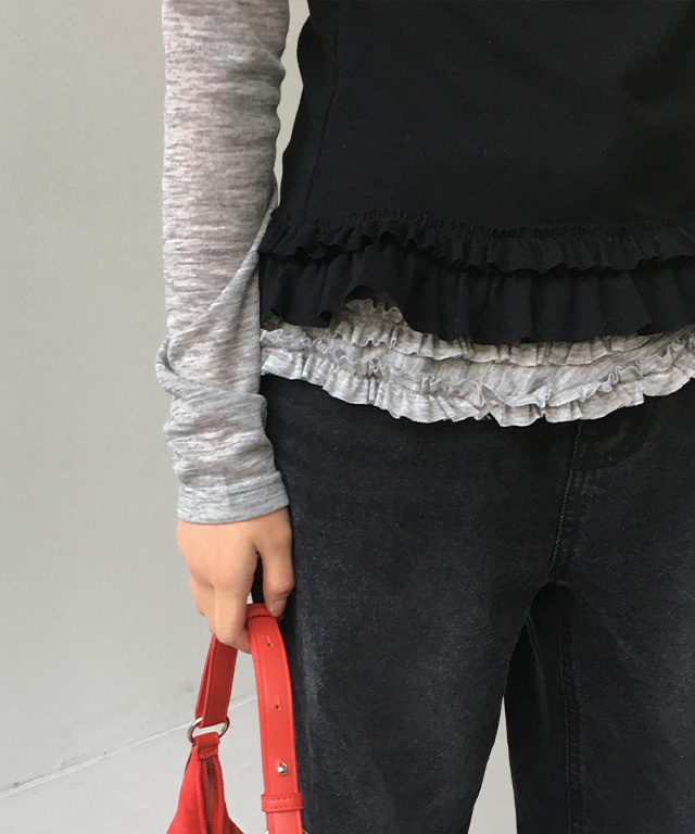 [무료배송] 포케 나시 레이어드 프릴 티셔츠 (나시 SET)