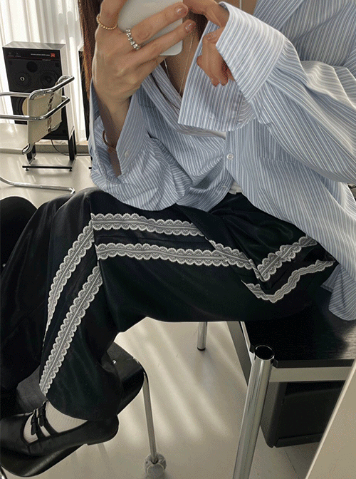 퓨레 레이스 팬츠 (2colors) (트레이닝/와이드팬츠/올밴딩/트랙팬츠)