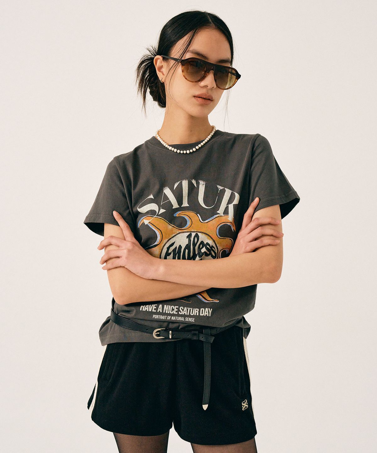 썬 레트로 그래픽 반팔 티셔츠 - 레트로 차콜