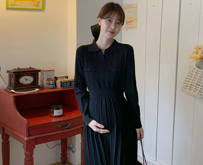 임부복*오픈카라넥 니트 원피스