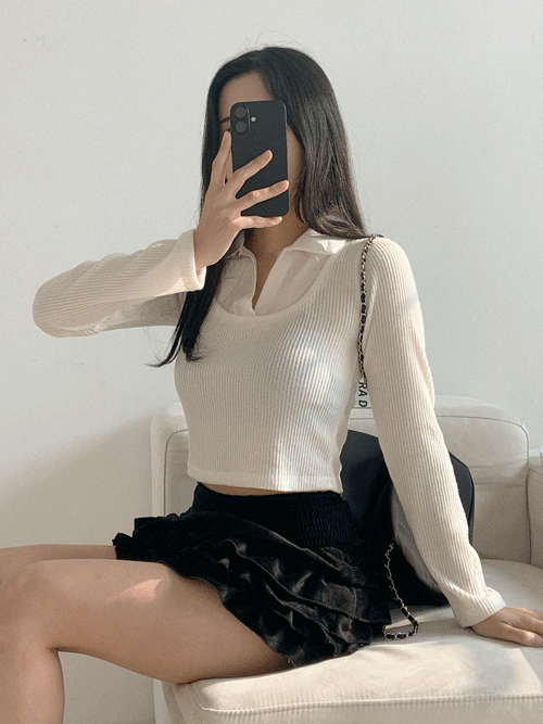 [3color] 페이크 셔츠 크롭 니트 티셔츠 BTD168