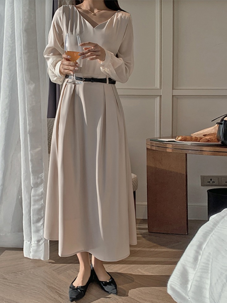 [하이퀄리티/소프트/체형보완♥][44-120] 도브헨 쉬폰 벨트 세트 롱 원피스 (신상-봄-가을-데일리룩-데이트룩-오피스룩-러블리룩-하객룩-모던룩-빅사이즈-120사이즈-자체제작-플레어-여리핏-셋업-투피스세트)