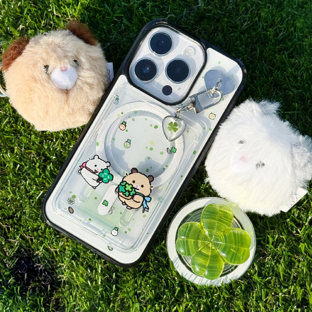 [포시러브 X 나인프] 그린 클로버 맥세이프 케이스 맥세이프그립톡 맥세이프카드수납 햄스터 아이폰 갤럭시 에폭시 폰케이스 아이폰케이스 핸드폰케이스 아이폰 17