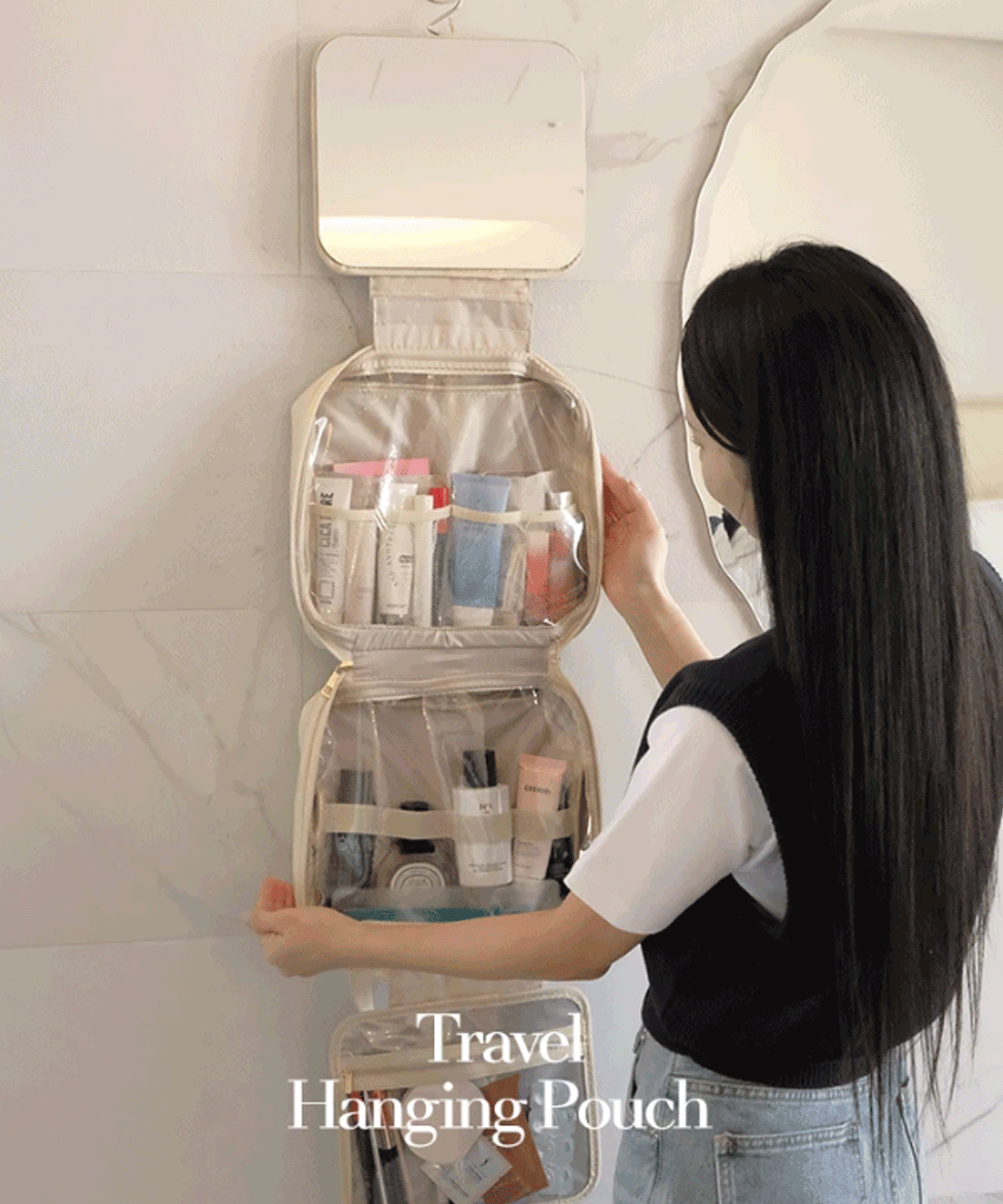 거울포함 벽걸이형 세면도구 트래블 행잉 파우치 여행가방