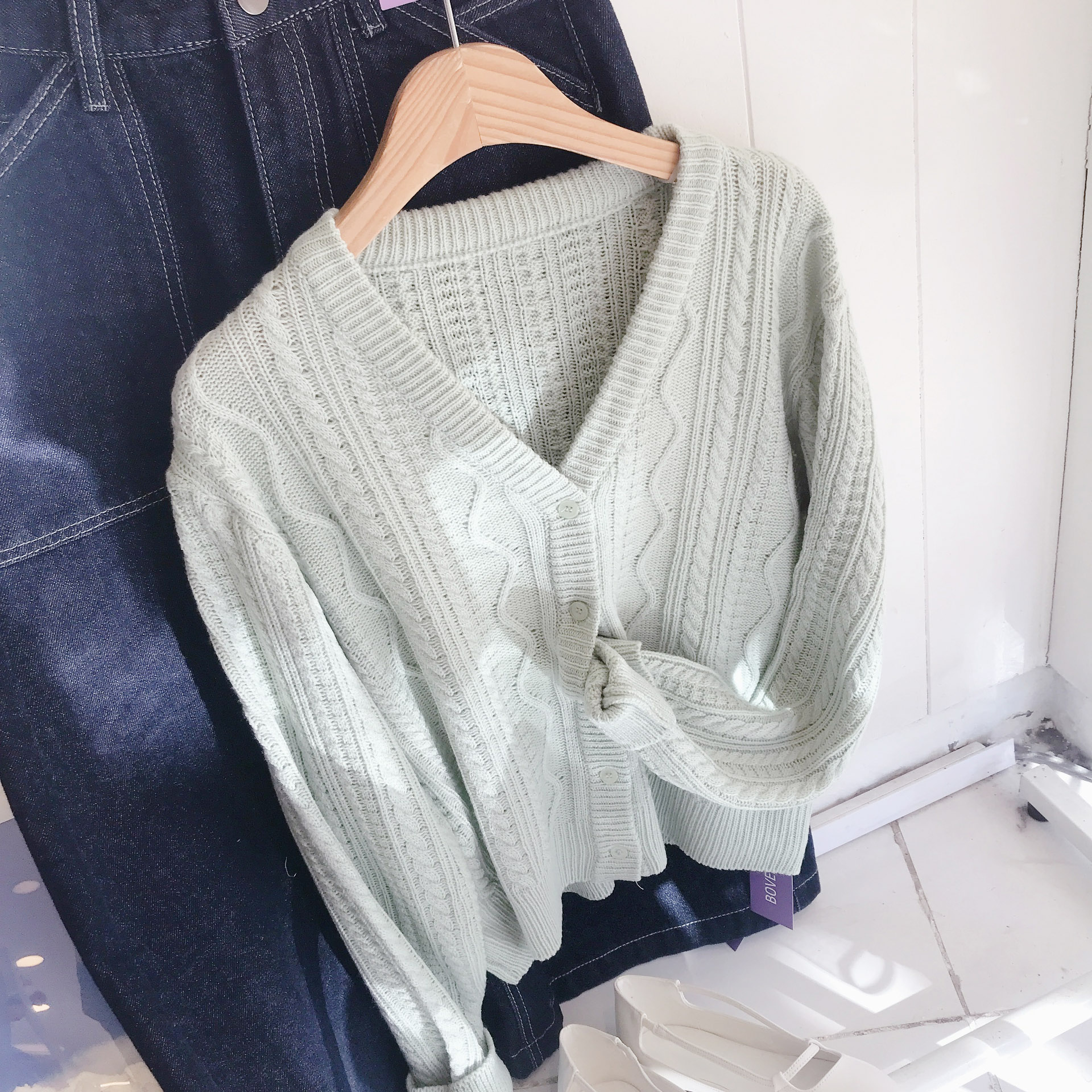 (6color) 꽈배기 물결 브이넥 니트 가디건